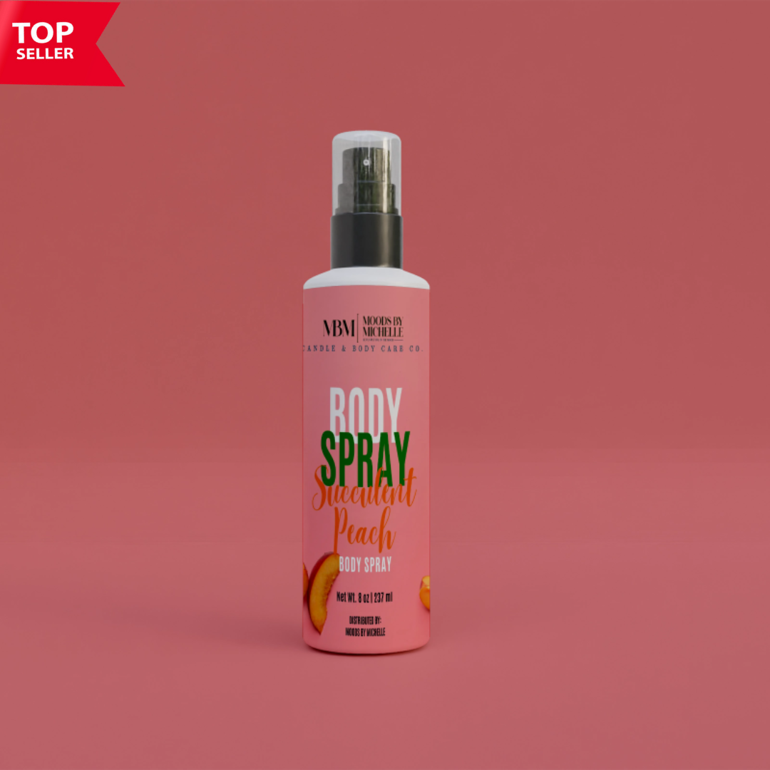 Water, Aloe Vera Extract, Glycerin, Sodium PCA, Cetrimonium Chloride, Pro-Vitamin B5, Marigold Extract, Jojoba Oil, Chamomile Extract, Fragrance Oil, Comfrey Extract, Cucumber Extract, Vitamin C & E Oil, Dimethicone Copolyol, Phenoxyethanol, Ethylhexylglycerin, Caprylyl Glycol, Hexylene GlycolT)Moods by Michelle Body Spray is Vegan, Cruelty, Gluten, Paraben, Soy, and Sulfate Free: It is available in 3 different sizes: 4 oz, 8 oz, and 16 oz